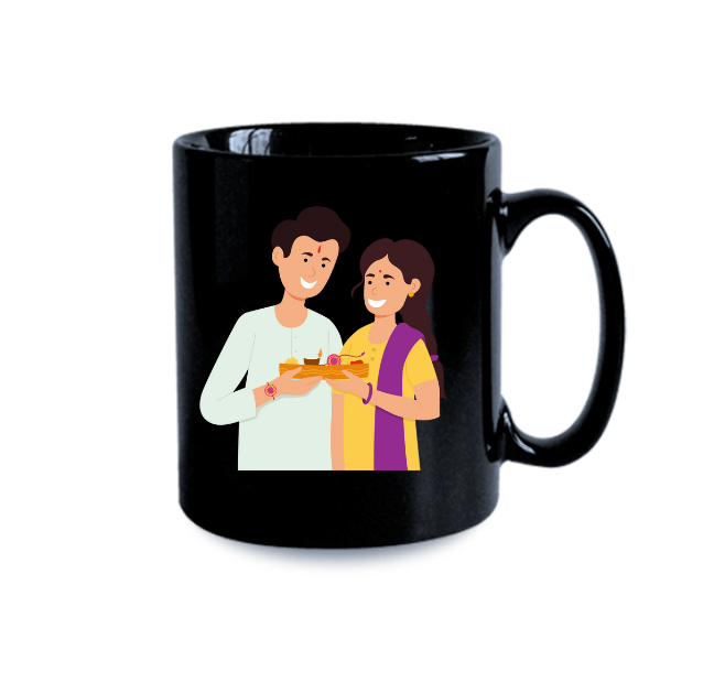 Timeless Elegance: Adorned with a traditional “Happy Rakshabandhan” print against a classic black backdrop, this mug captures the essence of the occasion’s rich heritage. Its design reflects the tradition and values that Rakshabandhan embodies.