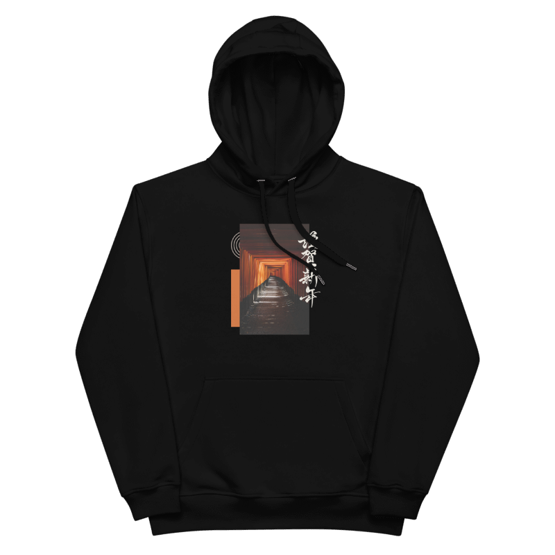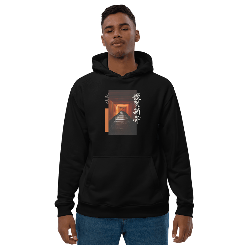Men Full Sleeve – Black Hoodie – Japanese Text With Mountain Printed Graphic Design