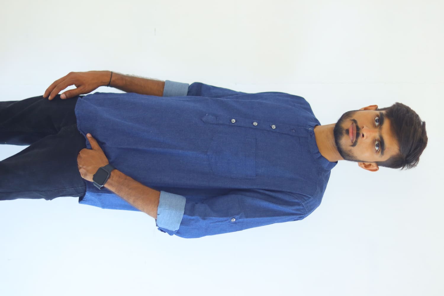Name : Men’s 100% Pure Cotton Regular Fit Blue jeans color Full Sleeve Kurta For Men