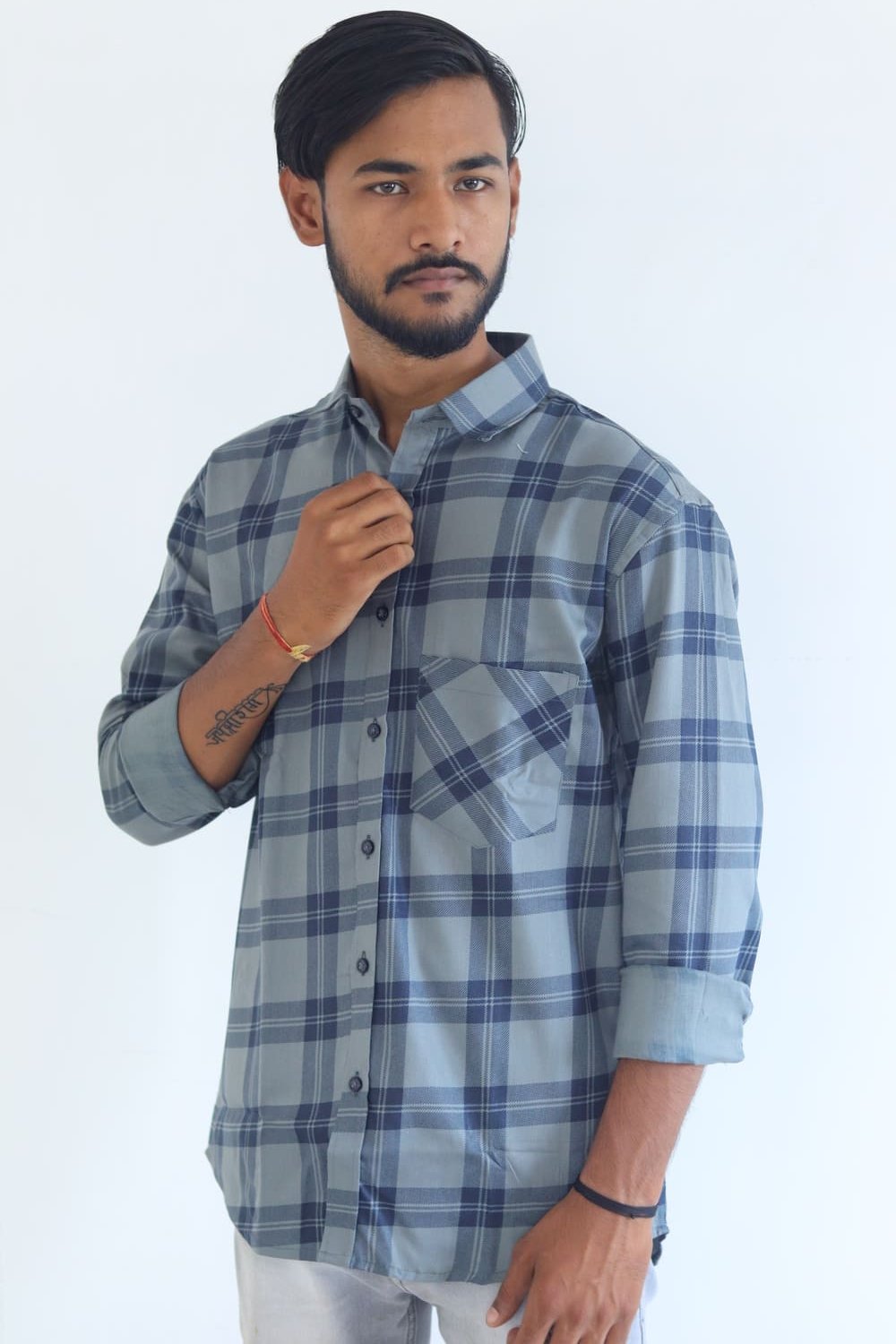 Name : Men’s 100% Pure Cotton Regular Fit Formal Gray with Blue Check Design Full Sleeve Shirt For Men Fabric : Pure Cotton Sleeve Length : Long Sleeves Net Quantity (N) : 1...