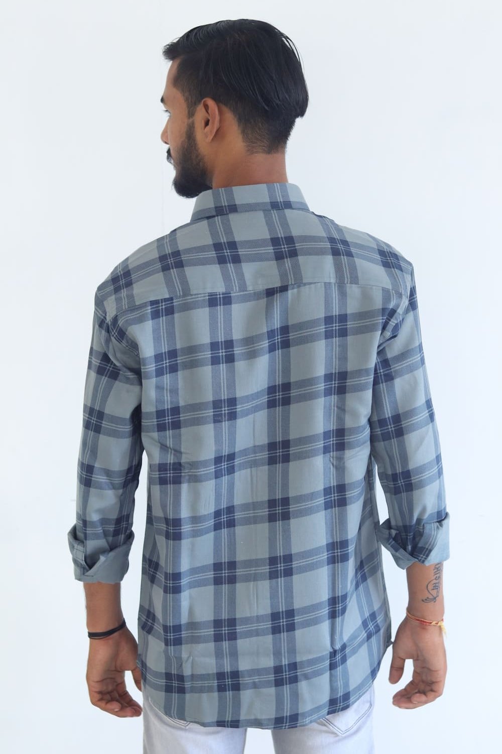 Men’s Pure Cotton Regular Fit Formal Gray with Blue Check Design Full Sleeve Shirt For Men