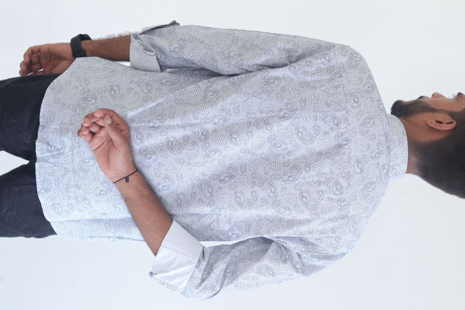 Men’s Pure Cotton Regular Fit White with Gray Design Full Sleeve Shirt For Men