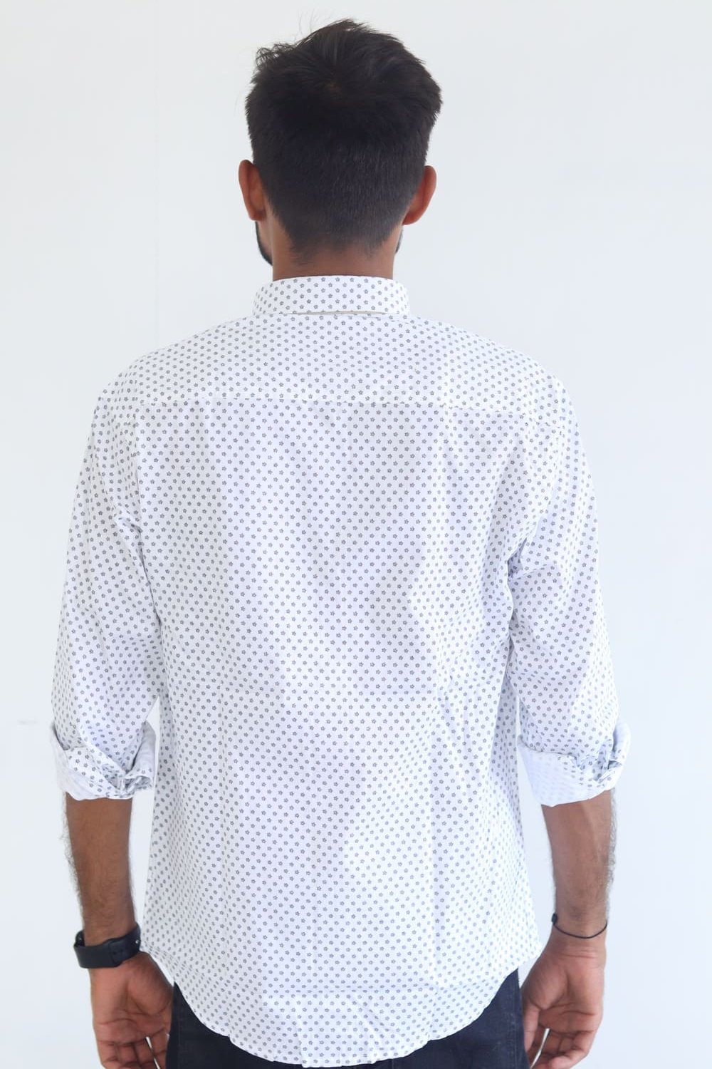 Men’s Pure Cotton Regular Fit White with Gray dots Design Full Sleeve Shirt For Men