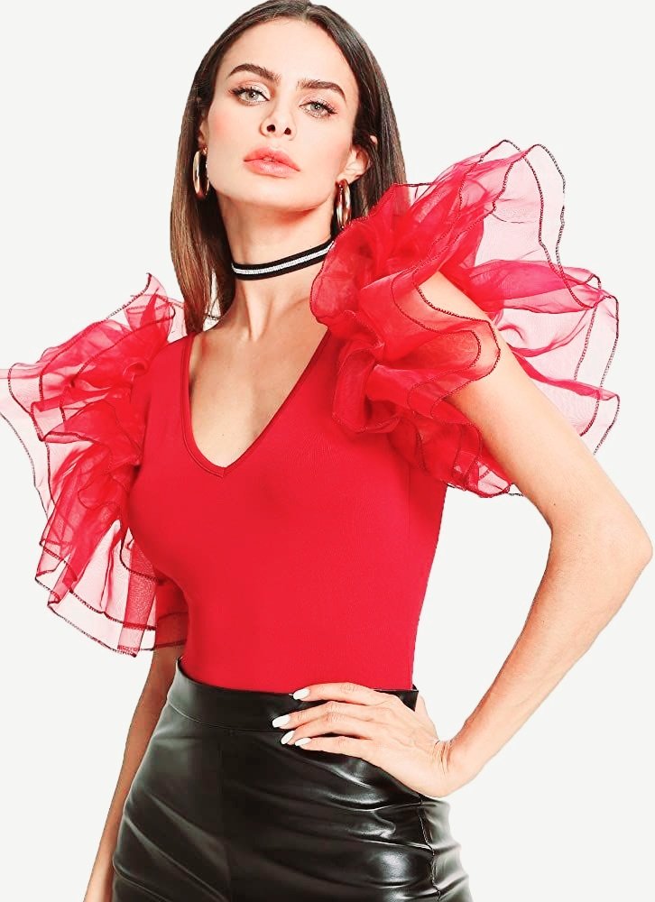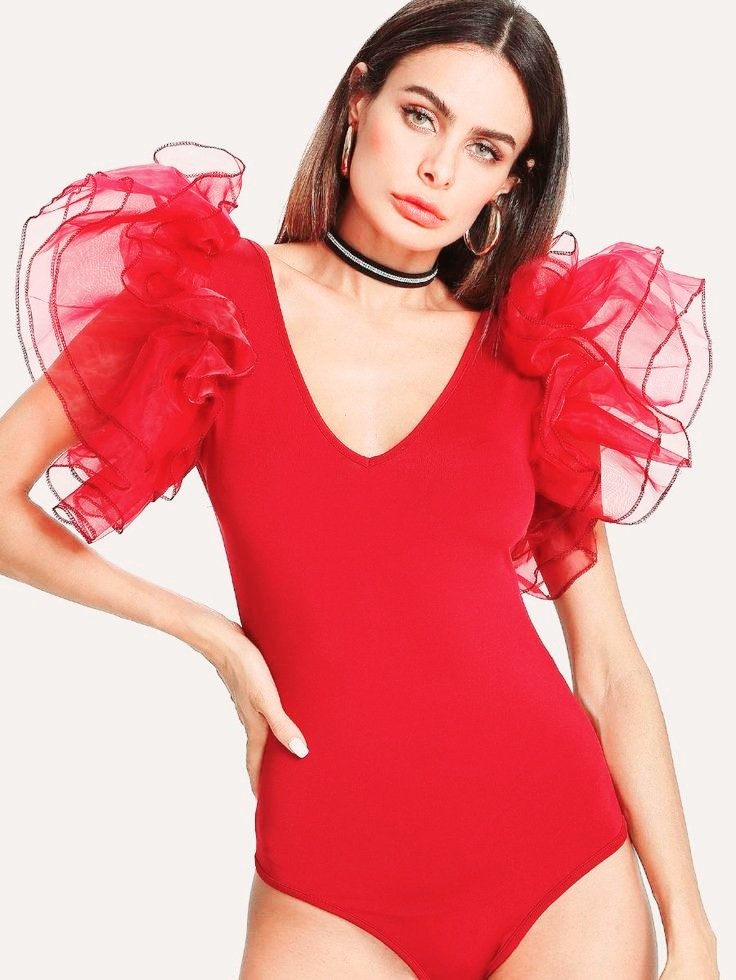 Red swimwear bodysuit for women