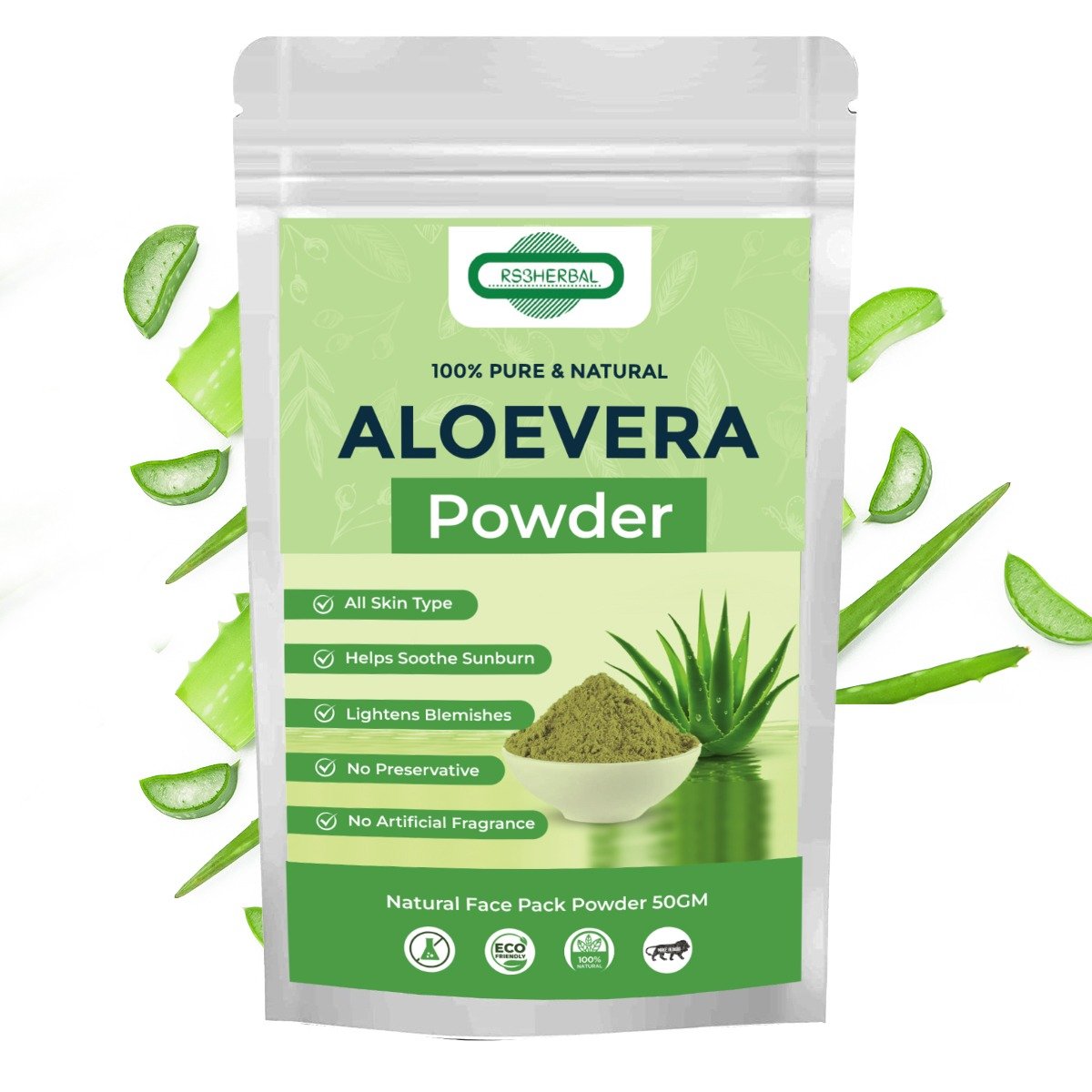 RS3 Herbal Pure Natural Aloevera Powder – 50GM Benefits – · Healthy Youthful Skin · Natural Exfoliant · Skin Brightening · Skin Rejuvenation · Natural cleanser...