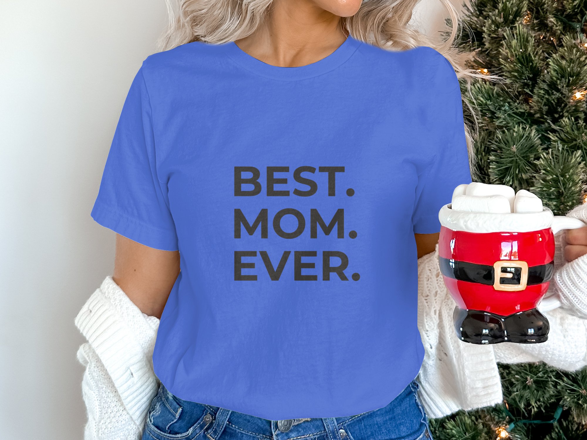 Single Side Best Mom Ever Design Printed – Blue T-Shirt – Rounded Neck T-Shirt For Women