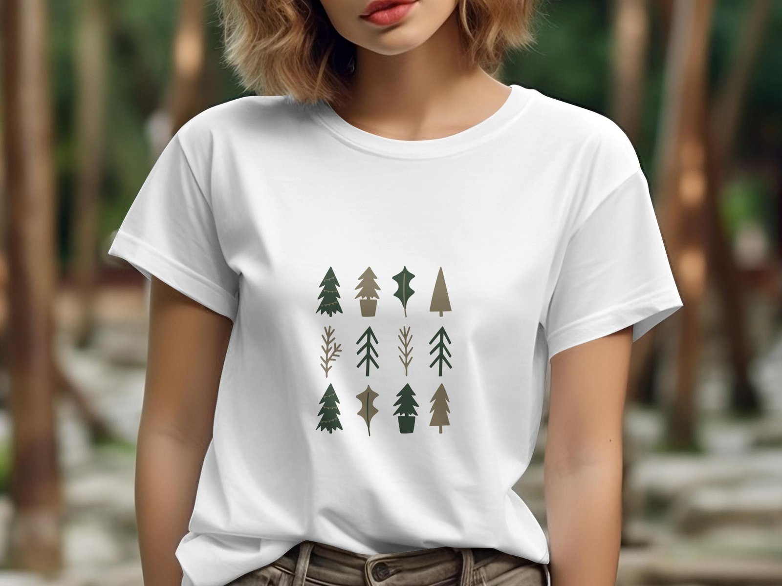 Single Side Trees Design Printed – White T-Shirt – Rounded Neck T-Shirt For Women