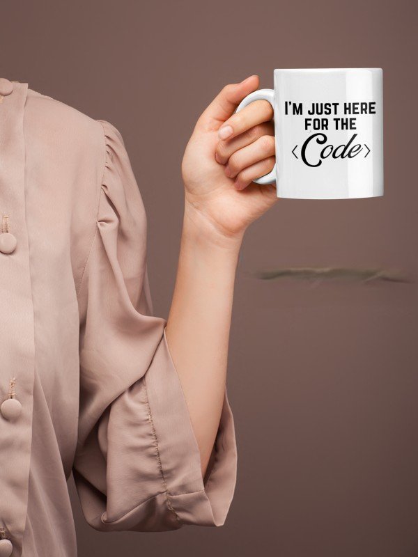 White Printed Mug – I Am Just Here For Code Written